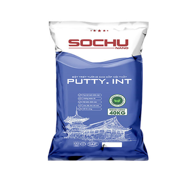 Bột trét tường cao cấp nội thất Sochu là vật liệu thích hợp cho các loại sơn, có tính năng bảo vệ, chống thấm cao, tạo bề mặt nhẵn mịn